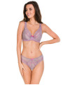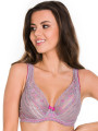 Zarte Spitze in Lavendelhauch, akzentuiert mit leuchtend pinken Highlights, schafft ein Spiel weicher Töne auf der Haut. Weiche Bügel-Cups, verstärkt mit schwerelosem Mesh, bieten perfekten Halt und eine natürliche Form der Brust.