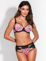 Die Cups bestehen aus nudefarbenem Mesh mit zart aufgesetzter floraler Guipure-Spitze. Das transparente, nudefarbene Mesh und der schwarze Besatz entlang der Ränder fügen Definition und Kontrast hinzu, was einen faszinierenden Effekt erzeugt.