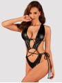 Obsessive Cordellis Verführerischer Ouvert-Body aus glänzendem Kunstleder mit Schnürung