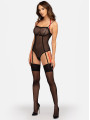 Obsessive Glandez Transparenter schwarzer Netz-Body mit Strapshaltern