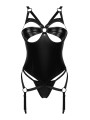 Obsessive Armares Verführerisches Kunstleder-Set: Korsett mit offenen Cups und String