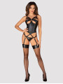 Das Obsessive Armares Korsett ist ein gewagtes Stück Damen-Wäsche, entworfen für einen selbstbewussten Look. Dieses schwarze Dessous-Set besticht durch ein glänzendes Kunstleder-Finish und verführerische offene Cups. Dieses schwarze Korsett beinhaltet angebrachte Strumpfhalterriemen und einen passenden String, um eine abgestimmte, vorteilhafte Silhouette für jeden besonderen Anlass zu schaffen.