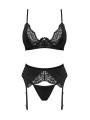 Obsessive Bellastia Erotik-Set: Soft-BH, String und Strumpfhalter mit Spitzenbesatz