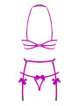 Das Obsessive Delishya Dessous-Set ist eine lebendige dreiteilige Kollektion von Damen-Wäsche, entworfen für eine verspielte und mutige Ästhetik. Dieses lila Dessous-Set beinhaltet einen offenen Halb-BH (Cupless), einen passenden Strumpfhaltergürtel und einen sexy String. Das glänzende Material und die dekorativen Schleifendetails schaffen einen atemberaubenden, selbstbewussten Look für besondere Abende.