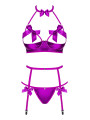 Dieses lila Set kombiniert ein provokantes Design mit offenen Cups und charmanten Akzenten, um Ihre Silhouette zu betonen und ein glänzendes, auffälliges Finish zu bieten.