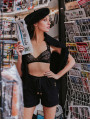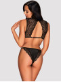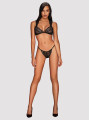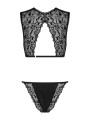 Das Obsessive Elisetta Dessous-Set ist eine exquisite zweiteilige Kollektion von Damen-Wäsche, entworfen für Selbstbewusstsein und Eleganz. Dieses schwarze Dessous-Set besticht durch transparente florale Spitze mit einem einzigartigen geometrischen Rückendesign. Dieses schwarze Stück kombiniert zarte Materialien mit einem subtilen Glitzer-Finish für einen raffinierten Look. Das Set beinhaltet einen passenden BH und Pantys.