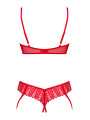 Obsessive Ingridia Rotes Erotik-Set: Offener BH und Ouvert-String mit abnehmbaren Trägern