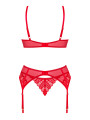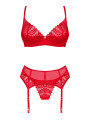 Obsessive Ingridia Verführerisches rotes Spitzen-Set: Soft-BH, String und Strumpfhalter