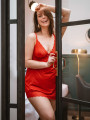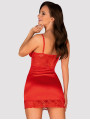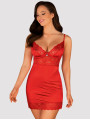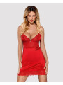 Obsessive Lovica Chemise: Rotes glänzendes Nachthemd mit Spitze und Bügeln