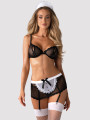 Das Obsessive Maidme Dessous-Set ist ein kokettes 5-teiliges Kostüm, entworfen für verspielte Abende. Dieses schwarze Dessous-Set besteht aus einem Bügel-BH mit offenen Cups und einem passenden Strumpfhaltergürtel mit weißer Spitzenschürze. Es handelt sich um hochwertiges Damen-Dessous, das ein sinnliches schwarzes Design mit komfortablen Materialien verbindet. Perfekt, um Spaß ins Schlafzimmer zu bringen.