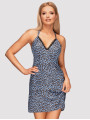 Das Obsessive Nadines Chemise ist ein mutiges Stück Damen-Wäsche, das einen auffälligen Tierdruck mit eleganten Details verbindet. Dieses blaue Stück besticht durch einen tiefen Ausschnitt, der mit zarter Spitze und einem dekorativen Schmuckornament veredelt ist. Der glatte Stoff schafft eine wunderschöne Silhouette und macht dieses blaue Dessous-Set perfekt für besondere Abende.