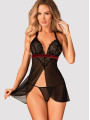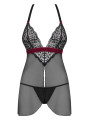 Das Obsessive Rossita Babydoll ist ein raffiniertes Stück Damen-Dessous, entworfen, um Ihre natürlichen Kurven zu betonen. Dieses schwarze Stück besticht durch transparenten Mesh-Stoff gepaart mit elegantem burgunderrotem Samtbesatz und floralen Spitzen-Cups. Es bietet eine bequeme Neckholder-Passform und macht dieses Set zur perfekten Wahl für romantische Abende.
