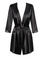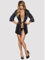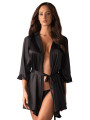 Obsessive Satinia Robe: Schwarzes Satin-Peignoir mit Ärmeln aus Guipure-Spitze