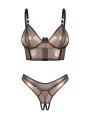 Gefertigt aus schimmerndem Mesh, bietet dieses bronzefarbene Dessous-Set eine Mischung aus Eleganz und mutigem Stil für einen unvergesslichen Abend.