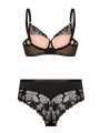 Erleben Sie die perfekte Verschmelzung von verführerischem Stil und alltäglichem Komfort mit dem schwarz-beigefarbenen Mefemi Hanna Bralette. Dieses atemberaubende Stück kreiert einen raffinierten "Tattoo-Effekt" auf der Haut und verfügt über aufwendige schwarze florale Spitze, die über nudefarbene Cups gelegt ist. Im Gegensatz zu unstrukturierten Soft-BHs ist der Hanna ein voll stützender Push-up-BH mit Bügel, der entworfen wurde, um Ihre Brust anzuheben und zu zentrieren. So erhalten Sie die optische Leichtigkeit eines Bralettes mit der formenden Kraft traditioneller Dessous.
