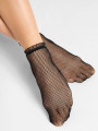 Die FIORE Alpha Socken sind modische Damen-Netzsocken mit einer einzigartigen Organza-Spitzenrüsche um den Knöchel. Diese schwarzen Netzsocken kombinieren ein klassisches Rautennetz-Muster mit einem weichen dekorativen Besatz und erzeugen einen mutigen visuellen Kontrast, der die Aufmerksamkeit auf das Schuhwerk lenkt. Als Teil der neuesten FIORE Fashion-Kollektion bieten sie eine raffinierte Möglichkeit, mit Texturen und Lagen zu spielen.