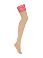 The Obsessive Cupide Desir stockings are a sophisticated piece of women's lingerie designed to highlight your legs with elegance. This beige stockings set features a lightweight nude tulle that blends seamlessly with your skin tone. The striking red lace welt adds a bold contrast, making this beige hosiery perfect for romantic evenings.