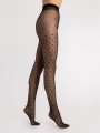 The FIORE Hailey pantyhose are 15 denier sheer women's hosiery featuring a classic diamond lattice pattern punctuated by small geometric dots. These black patterned tights create a refined vintage look, mimicking the structure of fine netting while providing the smooth coverage of traditional nylon. A sophisticated choice that adds texture to everyday outfits without being overwhelming.