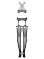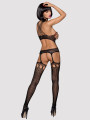 The Obsessive G313 bodystocking is a sultry piece of women's lingerie that combines a two-piece aesthetic with a full-body design. This black bodystocking features an intricate geometric motif and a unique top-and-stockings construction. Designed to enhance your curves, this black piece offers a bold look for any romantic occasion.