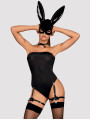 The Obsessive Bunny costume is a provocative piece of women's lingerie that includes a mask, bodysuit, and stockings. This black set features a classic black bodysuit with adjustable garter straps and a matching choker. Designed for a bold look, this black lingerie set helps you feel confident. This Obsessive Bunny outfit is an essential addition to any lingerie collection.