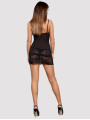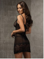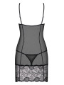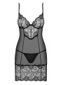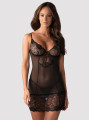 The Obsessive Alluria chemise is a stunning piece of women's lingerie that combines elegant floral lace with soft, sheer mesh. This black chemise features supportive underwired cups and vertical stitching for a flattering, contoured look. It includes a matching thong to complete this sensual and comfortable black lingerie set.