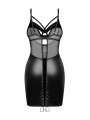 Black Faux Leather Chemise Obsessive Dominna — Lace-up Back