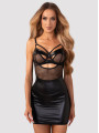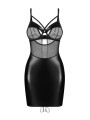 The Obsessive Dominna chemise is a bold piece of women's lingerie that combines edgy style with elegant details. This black chemise features a sleek faux leather finish and transparent mesh panels. Designed to hug your curves, this garment includes underwired cups and decorative chest straps for a confident, modern look.
