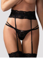 The Obsessive Nutris garter belt is a sensual piece of women's lingerie designed for confidence and style. This black garter belt features a botanical lace motif with a wide waistband to ensure a flattering fit. Crafted in Europe, this black lingerie piece coordinates perfectly with matching bras to complete your ensemble.