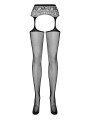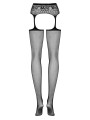 The Obsessive S307 garter stockings are a striking piece of women's lingerie that combines classic fishnet mesh with a functional lace belt. These black garter stockings feature a seamless one-piece design with a daring open crotch. Crafted from high-stretch fabric, this black piece ensures a comfortable, form-fitting look for any occasion.