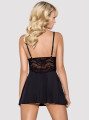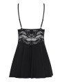 The Obsessive 810-BAB-1 babydoll is a charming piece of women's lingerie designed for a flirty and feminine look. This black babydoll features soft, padded cups and delicate lace inserts. It provides a flattering silhouette, making this black lingerie set an essential addition to your evening collection.