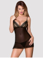 The Obsessive 862-CHE-1 chemise is an enchanting piece of women's lingerie designed for a sensual look. This black chemise features sheer mesh and delicate lace edges. The Obsessive 862-CHE-1 includes padded cups with beige lining to provide support while creating a beautiful, high-contrast visual appeal.
