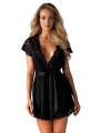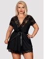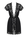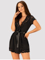 The Obsessive 810-PEI-1 robe is an alluring piece of women's lingerie designed for those who value confidence and elegance. This black robe combines smooth, high-quality fabric with decorative lace to beautifully highlight the female figure. The Obsessive 810-PEI-1 peignoir features a deep neckline and short sleeves for a sensual yet sophisticated look.