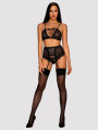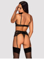 The Obsessive Basitta lingerie set is a bold three-piece collection of women's lingerie designed for a striking, seductive look. This black lingerie set features a combination of sheer mesh and premium velvet accents. With intricate corset lacing on both the bra and garter belt, it provides a tailored, beautiful aesthetic for special evenings.