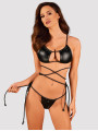 The Obsessive Cordellis lingerie set is a daring two-piece collection of women's lingerie designed for bold confidence. This black set features a shiny finish and unique wrap-around cords that highlight your curves. Crafted with a soft lining, this black lingerie set provides a comfortable yet rebellious look for any special evening.