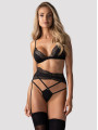 The Obsessive Lobellis lingerie set is a an enchanting 3-piece collection of women's lingerie designed for a bold and elegant look. This black lingerie set includes a delicate bra, a high-waist garter belt, and a matching strappy thong. Crafted from premium black fabric with unique lace, it combines lasting comfort with a sensual design perfect for any special evening.