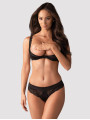 The Obsessive Miamor lingerie set is a captivating two-piece collection of women's lingerie designed for romantic evenings. This black set features an open-cup bra and matching thong with elegant lace detailing. The coordinated black lingerie design uses sheer mesh and supportive underwiring to enhance your natural shape while ensuring a comfortable, confident fit.