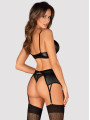 The Obsessive Norides lingerie set is a daring piece of women's lingerie designed for bold confidence. This black set features a shiny wet-look finish combined with intricate floral lace detailing. The black lingerie set includes an underwired bra and high-waisted panties, making it perfect for romantic evenings and special occasions.
