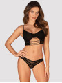 The Obsessive Roxelia lingerie set is a striking two-piece collection of women's lingerie designed to highlight your curves. This black set features unique crossing chest straps and a sensual neckline cutout for a modern look. High-quality sheer mesh provides a transparent finish while staying comfortable. This black lingerie set is ideal for special occasions.