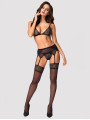 The Obsessive Shibu lingerie set is a stunning three-piece collection of women's lingerie designed for a bold look. This black set features an elegant bra, a garter belt, and a matching thong. Crafted from high-quality black lace with geometric patterns, it offers a modern style that flatters your natural curves beautifully.