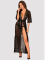 The Obsessive Estiqua robe is a stunning piece of women's lingerie designed for elegant evenings. This black robe features sheer fabric with a delicate dotted pattern and intricate lace trim. The long, flowing silhouette adds a touch of sophisticated style to any black lingerie collection. This black robe provides both comfort and a captivating look for special nights.