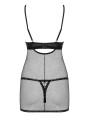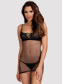 The Obsessive Rebella chemise is a seductive piece of women's lingerie designed for confident ladies. This black chemise features a striking leather-like bust with front lacing and a sheer fishnet body. The high-stretch material ensures this blacklingerie piece provides a comfortable, body-hugging fit for a romantic evening.