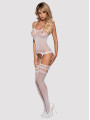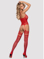 This collection combines a decorative top with integrated stockings for a seamless and enticing one-piece look.