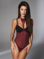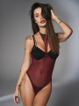 Crafted from premium elastic mesh, this burgundy bodysuit offers a mix of visual appeal and functional lingerie design.