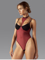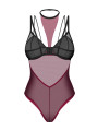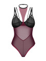 The Obsessive Exquisite Parisel bodysuit is a classy piece of women's lingerie designed for confidence and elegance. This burgundy bodysuit features semi-sheer mesh with contrasting black accents and a modern built-in choker. The supportive construction molds to your body for a flattering fit, making this lingerie perfect for special moments.