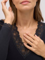 The Ysabel Mora 19483 long-sleeve T-shirt is a soft cotton women's lingerie layer with a feminine edge. This black melange top features a deep V-neckline trimmed in floral lace and a slim fit that follows your body naturally – versatile enough to wear as an undergarment or styled on its own. Lace that works overtime – looks good, feels better.
