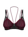 Crafted from soft mesh, this burgundy bra offers a striking contrast with its black details and architectural straps.