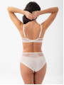 Projected Three-Part Cups — Multi-section seamed tulle provides immediate lift and prevents tissue from spreading across the chest wall.