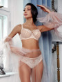 The Gorsenia K496 Paradise bra in beige is the ultimate foundation piece for every wardrobe, designed to provide full bust support with a seamless look under light-colored clothing. This beige bra combines technical Polish engineering with an inclusive size range extending up to M cups. Featuring double-layered sand-toned tulle and delicate strappy accents, it offers a sophisticated yet invisible support solution for everyday wear. Ideal for those who seek the perfect balance of a natural look and a high-projection silhouette.