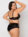 Most full-bust bras trade aesthetic detail for heavy construction, but the graphic elastic straps of the Mediolano 19252 Spider provide a modern look without sacrificing hold. This soft cup bra in jet black is available in extended cup sizes from D through K. As a piece of European lingerie, it uses strategic seaming to lift and center the bust.
