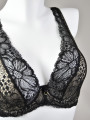 Luxurious black lace with a floral pattern stands out with contrasting beige mesh.